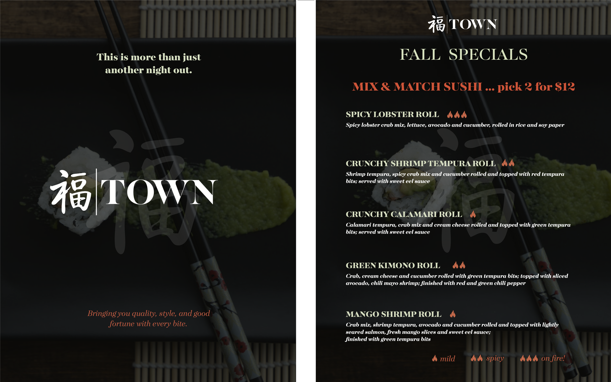TOWN combines Chinese cuisine and experiential dining to bring the authenticity of Chinatown to their customers. Quality and luxury are at the core of the TOWN brand with the promise of providing their clientele with the best quality food and the most luxurious experience.